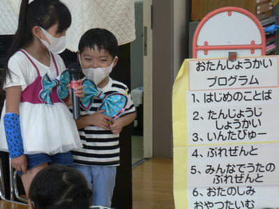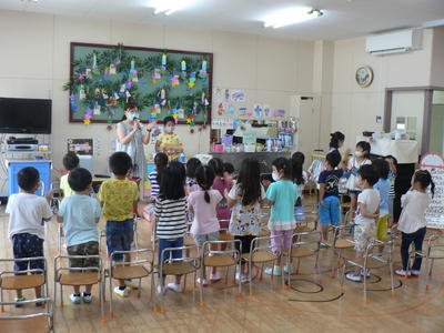 今日は七夕。7月生まれのお友達の誕生会と七夕集会を行いました。