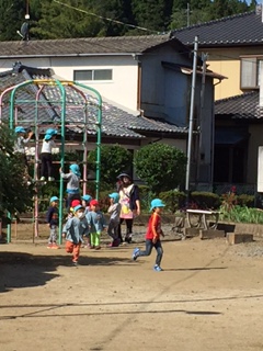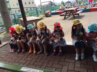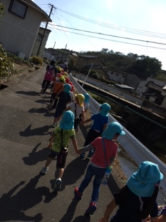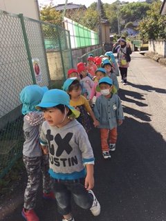 年長さんが、中学校に行ったので、年中・年少で近くの公園までお散歩です。
