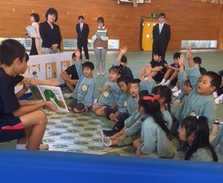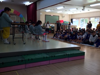 20日、2年生が音読劇「おてがみ」を観せにきてくれました。