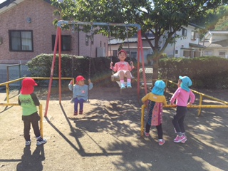 公園では、遊具で遊んだり、鬼ごっこをしたり、「あっ!きのこめっけ」「どくきのこだよ」