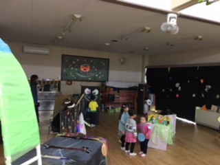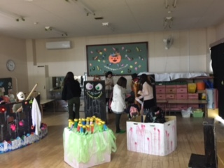 子どもたちを驚かせようとお母さんたちも頑張っていました。