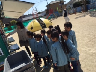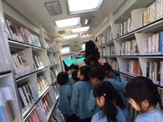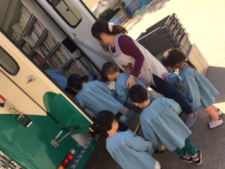 幼稚園に移動図書館がきました。