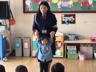 交通指導員の方から、お話や紙芝居を通して交通ルールの大切さを学びました。