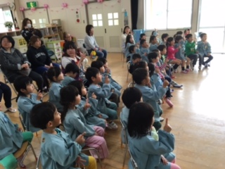 まずは、園長先生のお話を聞きます。