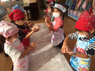 前日には、つき・そらぐみが、もち米の米とぎをしました。