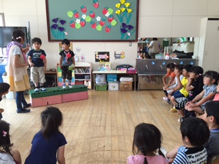 16日(火)は、ALT訪問で、スティーブン先生が来園してくれました。
