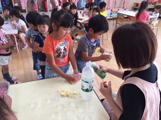 たくさん遊んだあとは、 つき組特製のフルーチェ♪