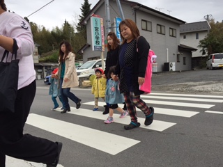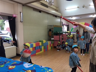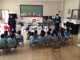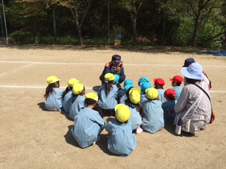 にじぐみは、初めての避難訓練でしたが、先生と一緒に泣かずに参加していました。