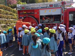 かっこいい消防車を見せてもらい、大満足の子どもたちでした。