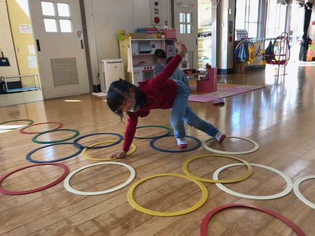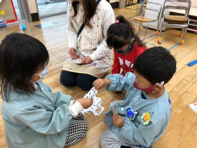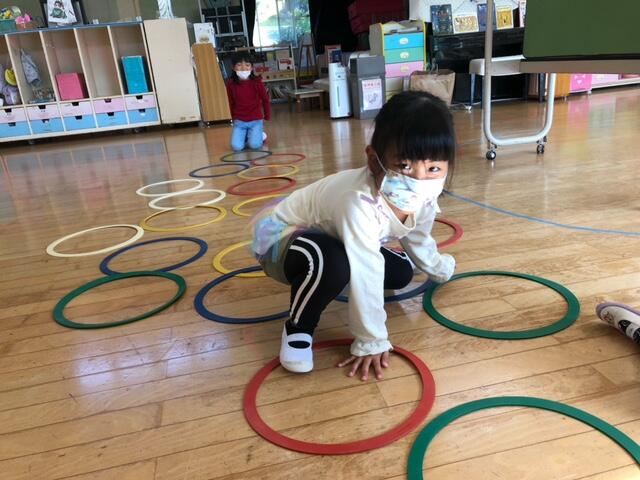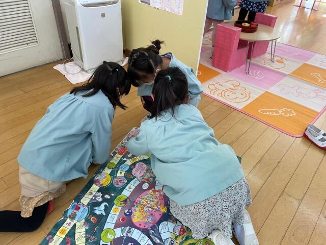 好きな遊びの時間。年長さんは昨日のゲームに挑戦です!