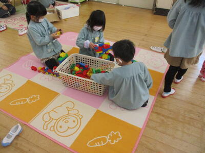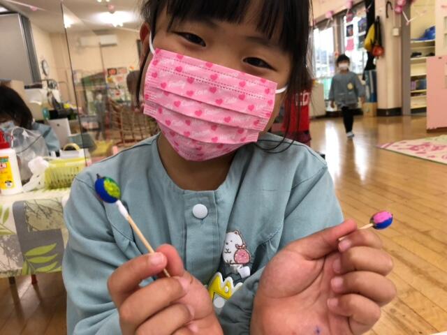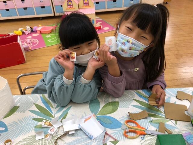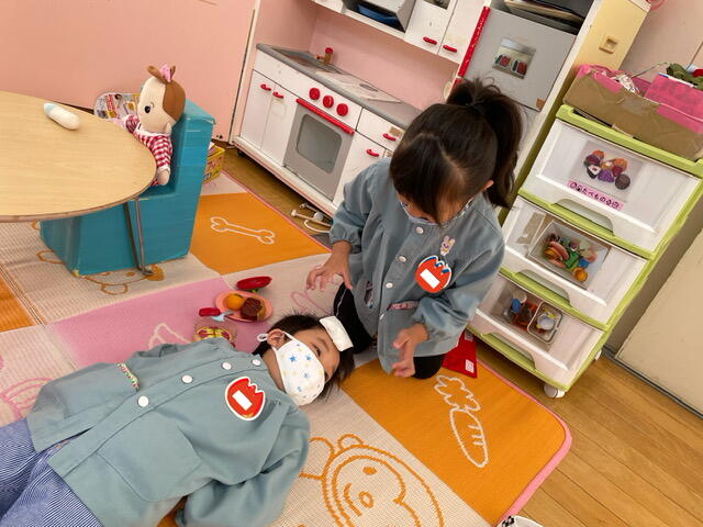 今日はあいにくの雨でしたが、子どもたちは友だちと一緒にままごとをしたり、ゲームをしたり、どんぐりこまを作ったりと楽しんでいました♪