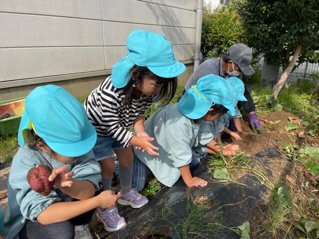 今日はにじ、そらぐみさんがお芋掘りをしました!