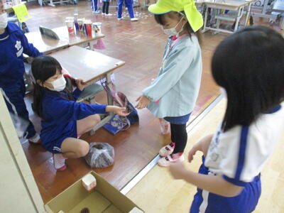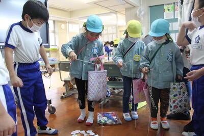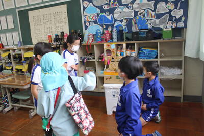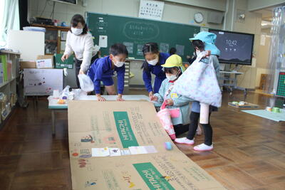 宮小学校の1年生と2年生からおもちゃ祭りに招待されました。
