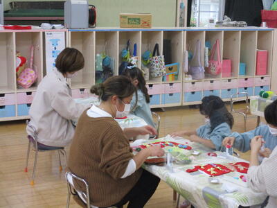 今日は保育参観。おうちの人と一緒に、クリスマス飾りを作りました。