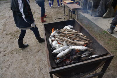 早速、薪の中へサツマイモを投入。時間をかけて低温でじっくり焼くことで、甘みが増します。焼き芋班、よろしくお願いします!