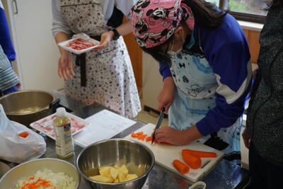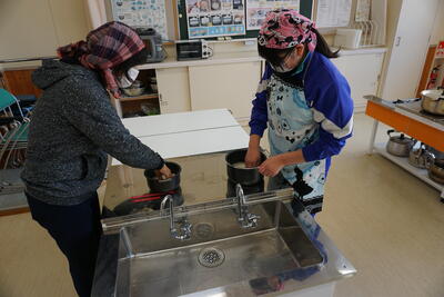 一方、生徒たちはカレーライスの調理へ。米をとぎ、あとは炊飯器にお任せです。