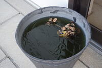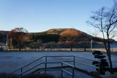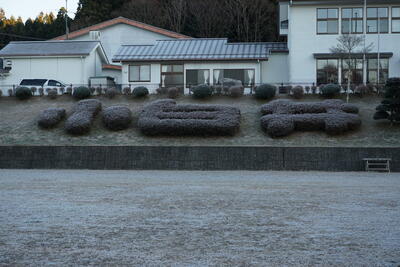 朝7時の気温は、マイナス5℃。今シーズンの最低気温の更新です。辺り一面、霜が凍って真っ白です。校庭には霜柱。昇降口にあるメダカの水槽の水面も凍りました。