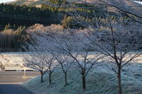 しばらくして太陽が昇ると、霜がキラキラと輝く美しい風景が出現です。まさに自然の造形美。何だか寒さも忘れそうになります。(凍てつく寒さは変わりませんが・・・)