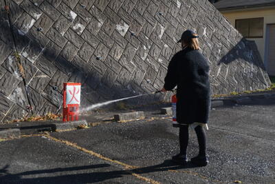 手順通りに消火器を扱い・・・