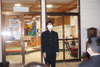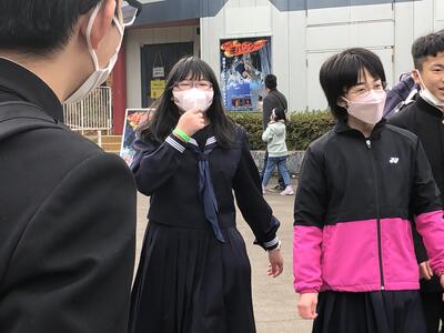 本校の昇降口前で修学旅行の解散式を行いました。出迎えていただいた保護者の方々や先生方に「ただいま帰りました」のあいさつです。