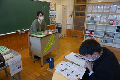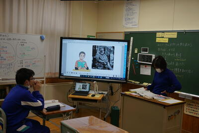 中2英語の時間。ユニバーサルデザインに関する内容の英文を学習しました。普段聞き慣れない英単語が登場しました。