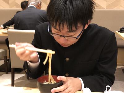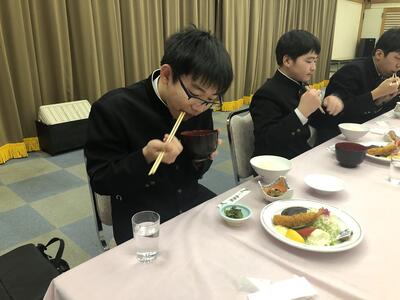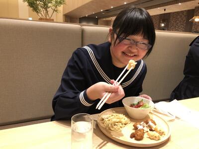 …の前に、お昼ご飯の様子をお届け致します。ハンバーグ&海老フライ定食に舌鼓を打ちます。美味しかったですね!