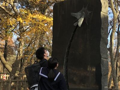 記念館の前では、宮沢賢治の代表作の一つ『よだかの星』の石碑が私たちを迎えてくれました。