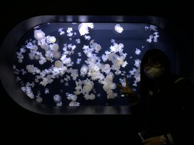 また、数多くのクラゲが展示されていることで有名な加茂水族館。クラゲが織りなす幻想的な世界に思わずうっとりしてしまいました。