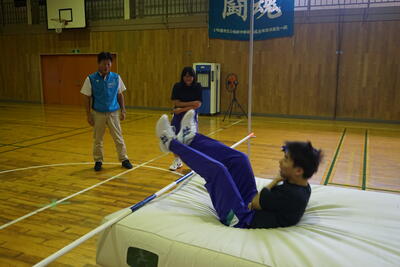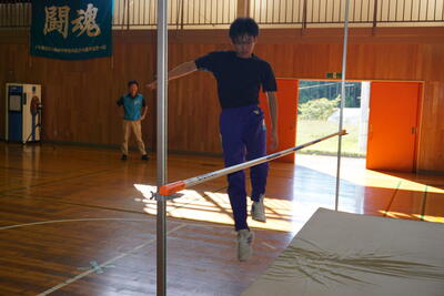 低い位置でポールを跳んでみました。ポールがあるだけで、恐怖心が芽生えます。
