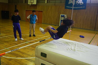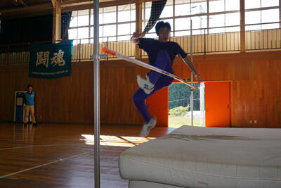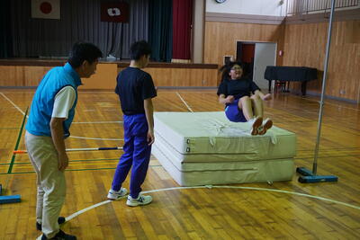 体育では、走り高跳びの記録会です。順調に記録を伸ばし、自己記録更新に挑戦中です。