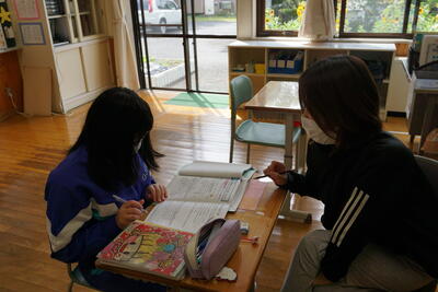 中1数学の授業。問題演習に取り組みました。わからないところは先生が丁寧に教えてくれます。