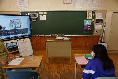4時間目、中1英語の授業。「Don't~」や命令形の学習です。