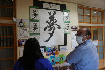練習の合間に、先生と昨年の作品を鑑賞しました。どんな思いで将来の「夢」を描いたのかを振り返りました。自然と「叶」の一文字に込める意識が変わってきます。