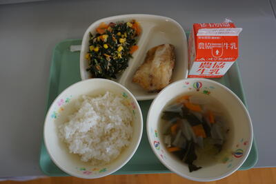 いよいよ給食。小白井中生が考えた献立です。とってもヘルシーでバランスのとれたメニューになりました。メインは大好きな「ホッケ」のから揚げ。写真のホッケも十分大きいのですが、なぜか生徒のホッケはこの1.5倍ぐらいありました。(たまたまでしょうか・・・。それとも給食室の方々の配慮でしょうか・・・。)とにかく、おいしくいただき、午後の授業も充実しました。