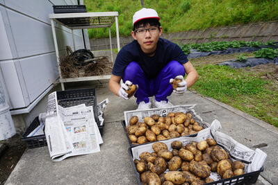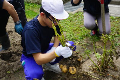 先生方も負けまいと次から次へと掘っていきます。品種は「きたあかり」。昨年収穫したものを種イモとして、春先に植えました。去年よりも出来は良さそうです。