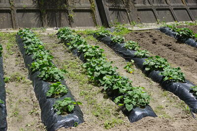 昨日収穫したじゃがいもですが、となりにはサツマイモが植えてあります。葉が青々と茂り、土の中ではきっと、大きく実が育っているはずです。