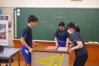 学活の授業にお邪魔しました。何やら1学期最後の時間を担任の先生と楽しんでいる様子が見られました。