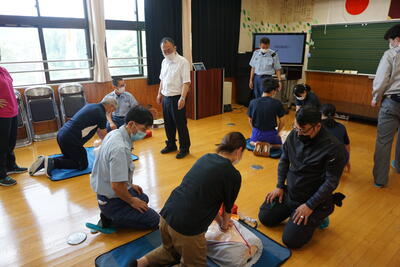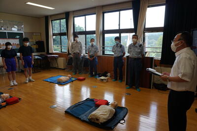 学活で通知票が渡された後は、救急救命(AED)講習会です。保護者の方も交えて、川前分遣所の職員の方々を講師として実施しました。