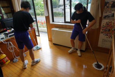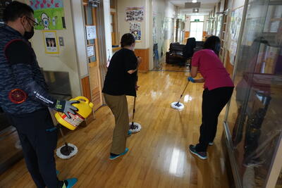 講習を終えて、さらに汗を流しました。愛好清掃&PTA奉仕作業としてワックスがけです。昨年ワックスがけができていなかった箇所を行いました。
