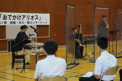 本日(30日)は、川前方部での「おでかけアリオス」が実施されました。「和ノ音 琵琶・尺八・箏コンサート」と題して行われた演奏は、とても美しいものでした。