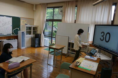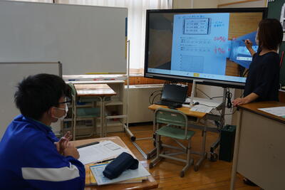 こちらは中1英語。デジタル教科書を活用し、数字や曜日、月日を発音です。テンポよく、どんどん発音しました。