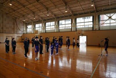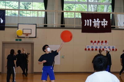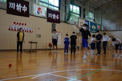 午後は、川前小中学校の体育館で公民館主催の方部交流会に参加しました。川前方部の小中学校の子どもたちと先生方が参加し、交流を深めるのがねらいです。