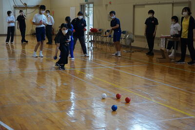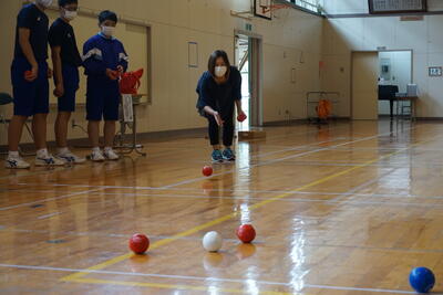 いよいよ本題のボッチャ競技です。くじで6つのチームに分かれてリーグ戦です。