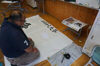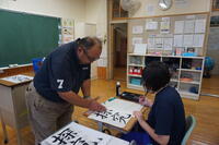 ・今日は書写の時間に、特別非常勤講師が来校されて、市の書道展に出品する作品をつくりました。