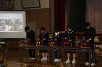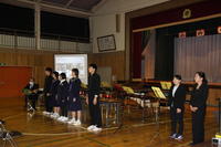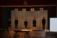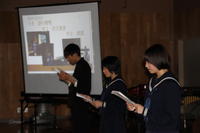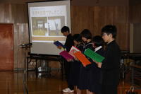 オープニング、校長先生の話、PTA会長の話、児童生徒代表あいさつのあと、学習成果の発表がありました。