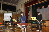 音楽の発表です。ディズニーメドレー演奏、カントリーロードの合唱、スペシャル演奏の様子です。先生方も参加しました。