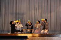 意見を出し合って完成させたステージ発表(私たちの未来)では、一人ひとりの将来の夢を実現させた様子を演じました。