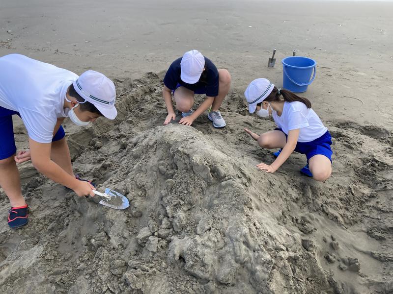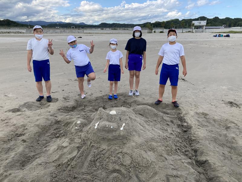 午後の活動は、砂の芸術です。5人でか考え、協力して「ウリ坊」を作りました。子ども達の芸術作品、ご覧ください!