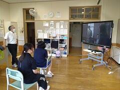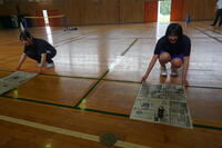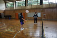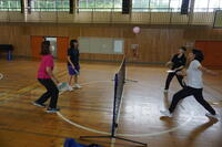 ・保健体育の時間では、ニュースポーツを行いました。身近にある物を使って、家庭でもできる運動を行い、全員で賑やかな雰囲気で運動を楽しみ、授業後の生徒の感想では「毎日やってみたい!」と言っていました。