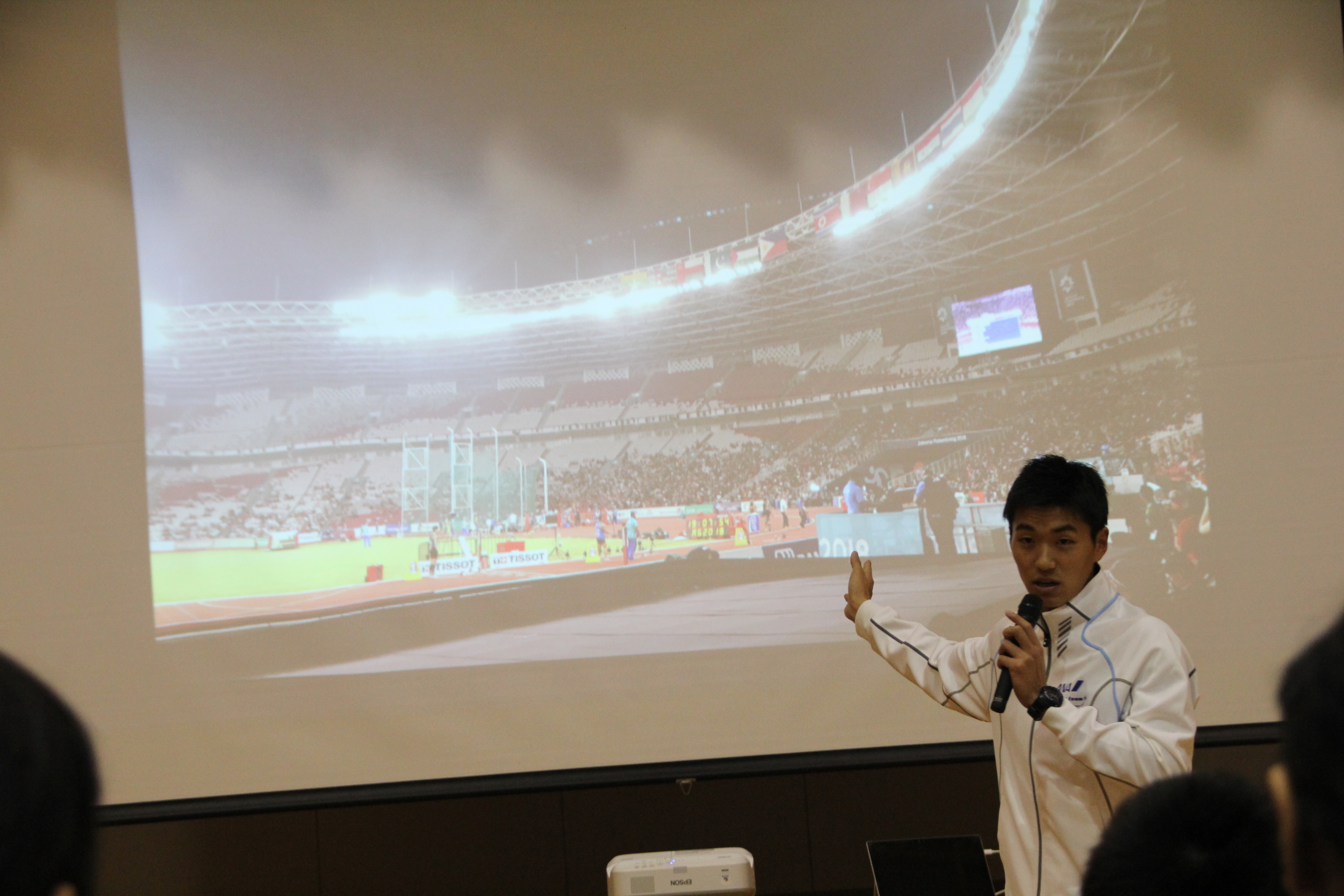 講演の中では、山下先生の幼少期の経験や、山下先生がこの競技でオリンピック選手を目指す契機となったお父さんの話などが語られました。最後には、リオオリンピックのメダリストの写真が映し出され、「東京オリンピックでは、私もぜひ表彰台に上がりたいと思います」と、力強く語っていただきました。